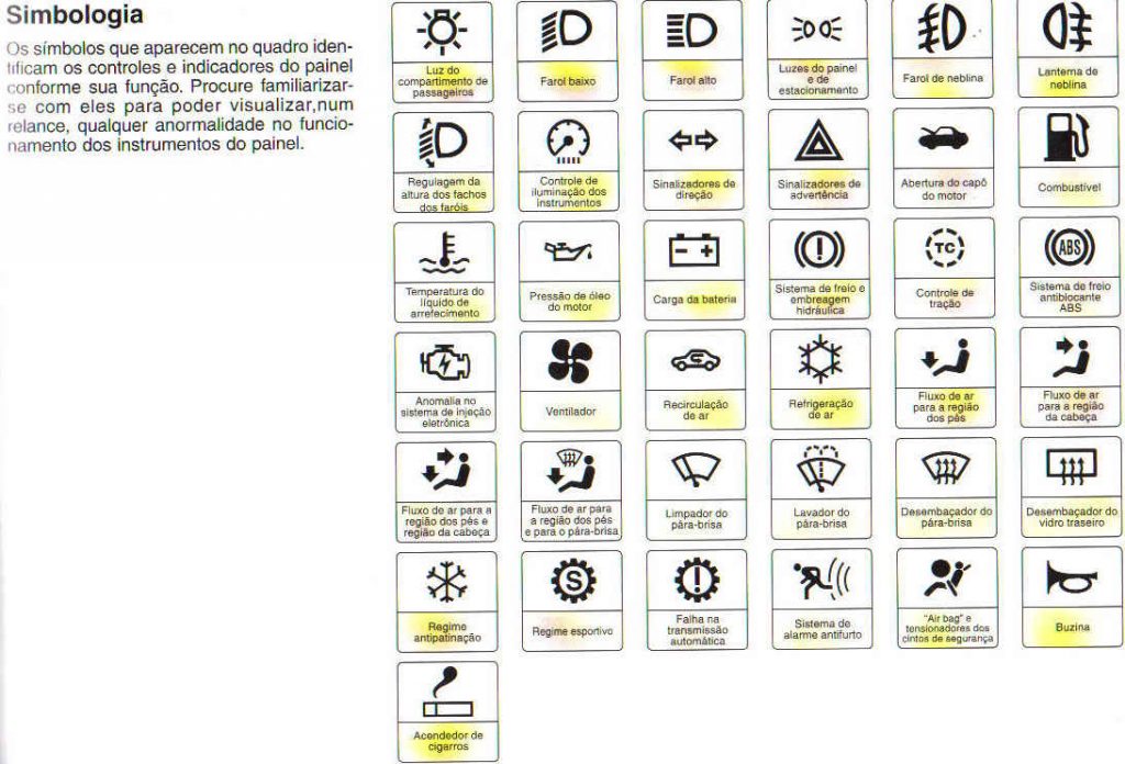 O manual do seu carro informa todos os significados destes símbolos e luzes.